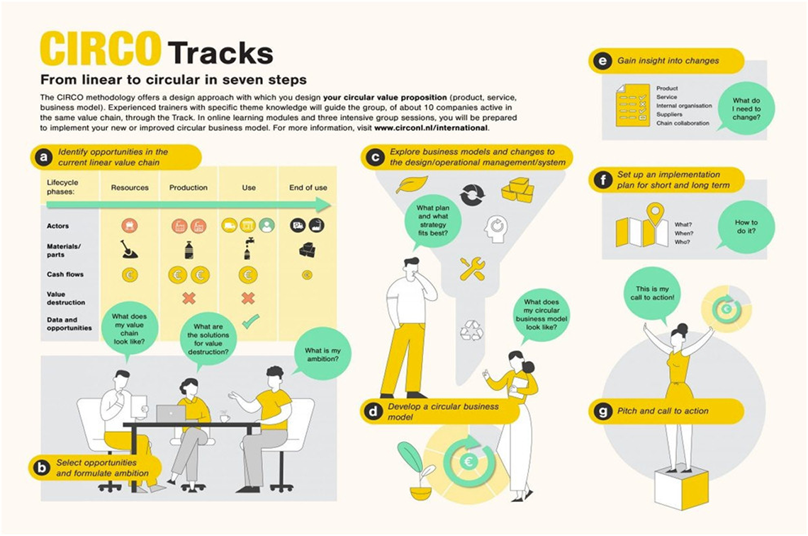 CIRCO เป็นตัวช่วยในการออกแบบธุรกิจหมุนเวียนที่เหมาะกับทั้งธุรกิจที่อยากจะเริ่มเข้าสู่วงจรของ circular economy และธุรกิจที่ทำเรื่องนี้อยู่แล้วแต่อยากจะเรียนรู้เพื่อทำให้ดีขึ้นอีก โดยสามารถช่วยให้ได้กลับมาทบทวนและปรับมุมมองอย่างเป็นขั้น เป็นตอน เพื่อเห็นโอกาสในการใช้ทรัพยากรให้คุ้มค่ายิ่งขึ้น